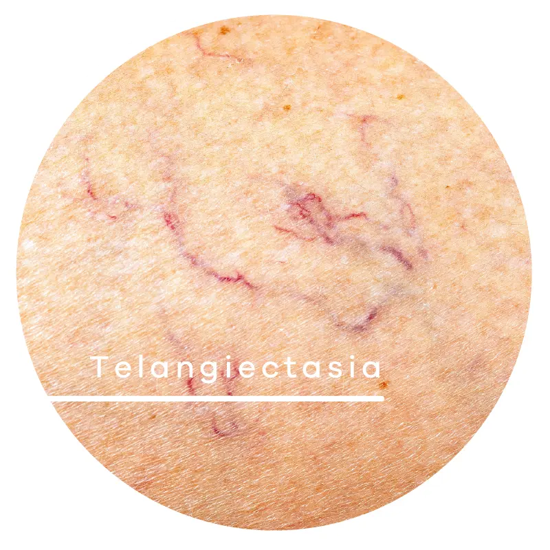 • Telangiectasia: enlarged blood vessels in the superficial skin